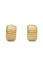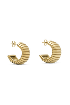 The AMELIA Textured Hoop Earrings offer a blend of timeless sophistication and contemporary design. Featuring a post stud for a secure and comfortable fit, these earrings are crafted in a half-hoop shape that elegantly frames the ear. The horizontal ribbed detailing adds a dynamic texture, enhancing the rounded silhouette. Plated in 18K gold, the Amelia Hoops exude a luxurious glow, making them a versatile accessory that effortlessly transitions from everyday wear to special occasions with effortless style.