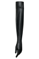 The JASPER Faux Leather Elbow Length Gloves are a chic statement piece designed to add a touch of sophistication to any outfit. Crafted from premium PU fabrication, these gloves offer the luxurious look of leather while ensuring comfort and durability. The longline design elegantly extends to the elbow, making them perfect for pairing with dresses or tailored ensembles. Featuring a stylish scrunched design, these gloves create a flattering fit that complements your arms beautifully.