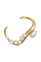The MARLEIGH Freshwater Pearl Ring is a modern statement of refined luxury. Designed as a dual-finger ring, this piece blends bold structure with delicate beauty. Its organically shaped metal setting creates an effortless, fluid form, while lustrous freshwater pearls add a timeless touch. Crafted with 18k gold plating for a radiant finish, the Marleigh ring is the perfect fusion of contemporary design and classic sophistication—ideal for elevating any look with a hint of understated opulence.