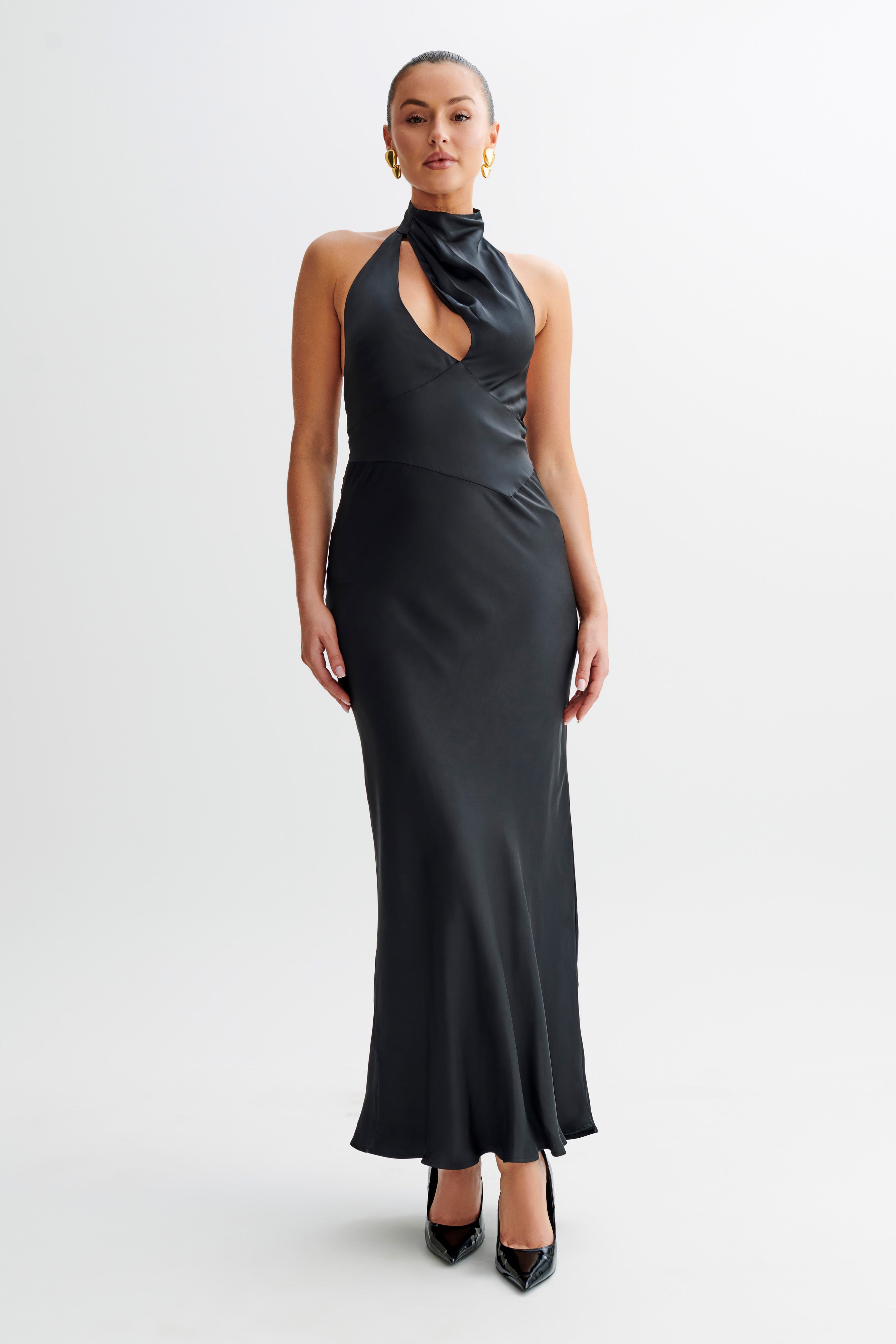 Belladonna Satin Halter Maxi Dress - Black