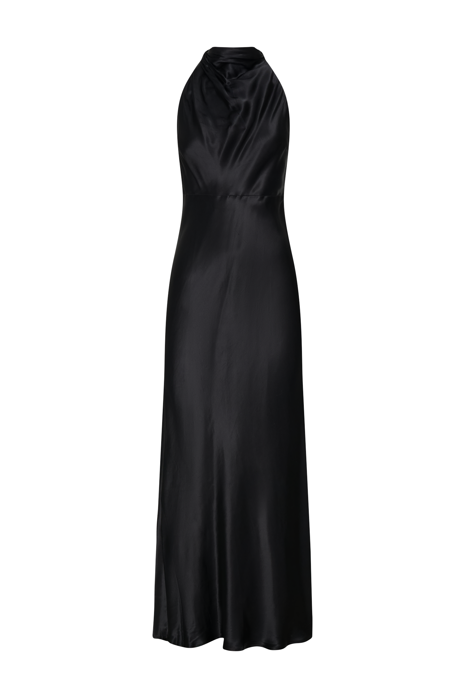 Esther Iridescent Satin Cowl Maxi Dress - Black