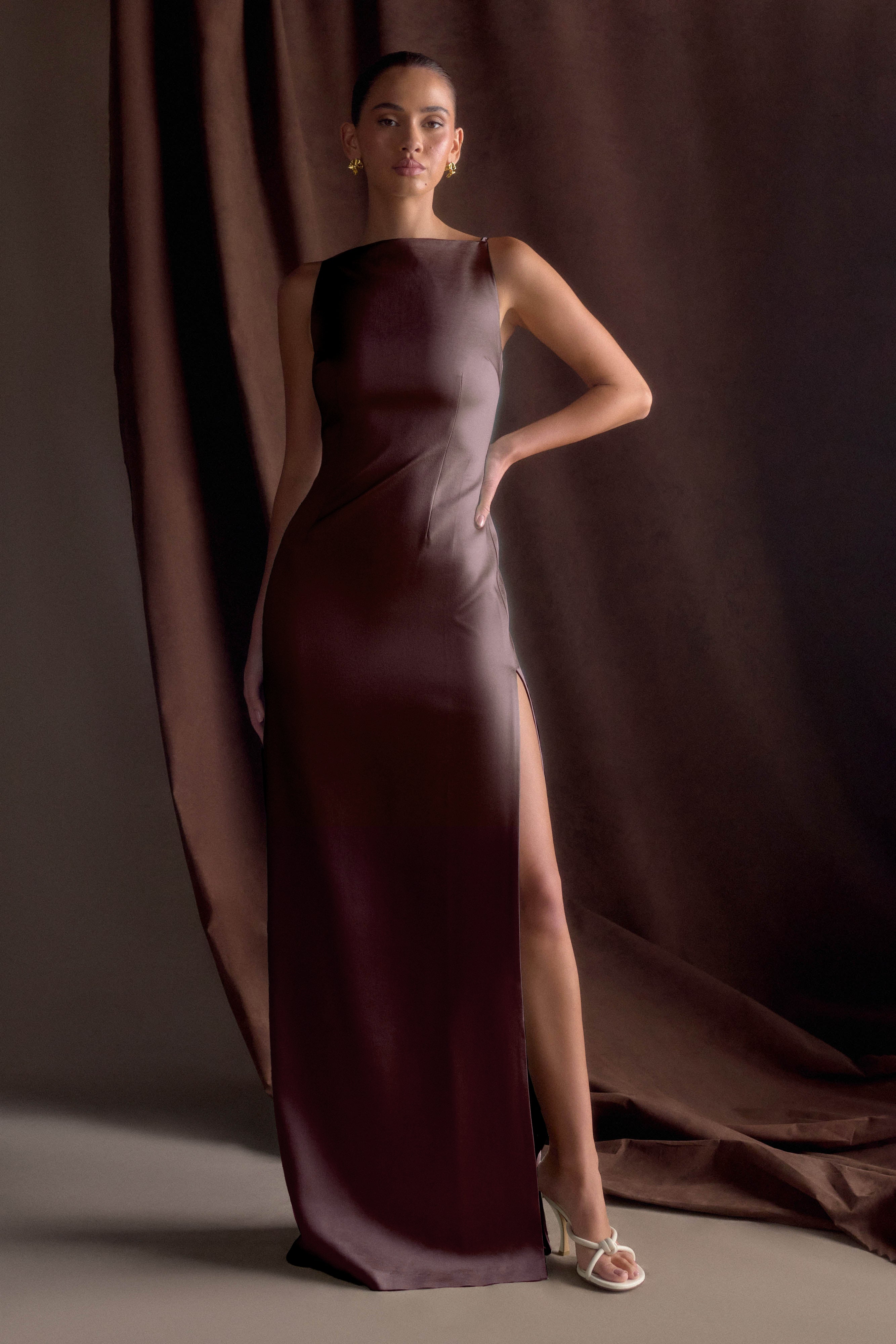 Violet Sleeveless Satin Maxi Dress - Dark Chocolate