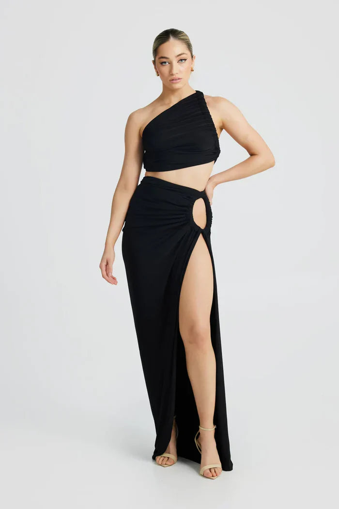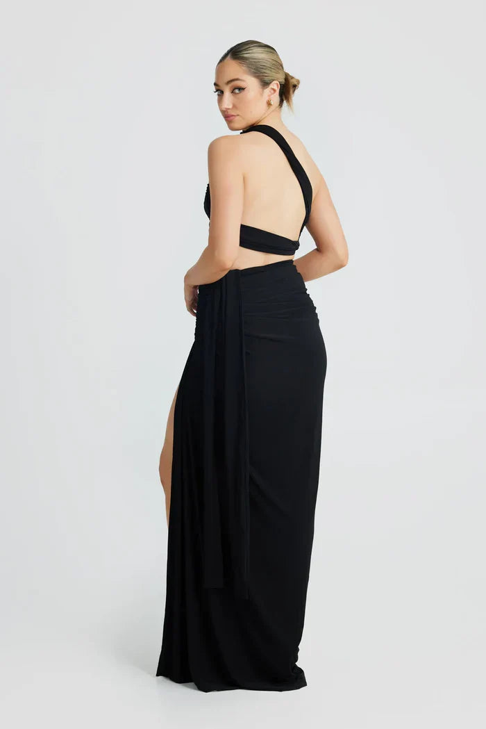 Vienna Slinky Cut Out Maxi Dress - Black