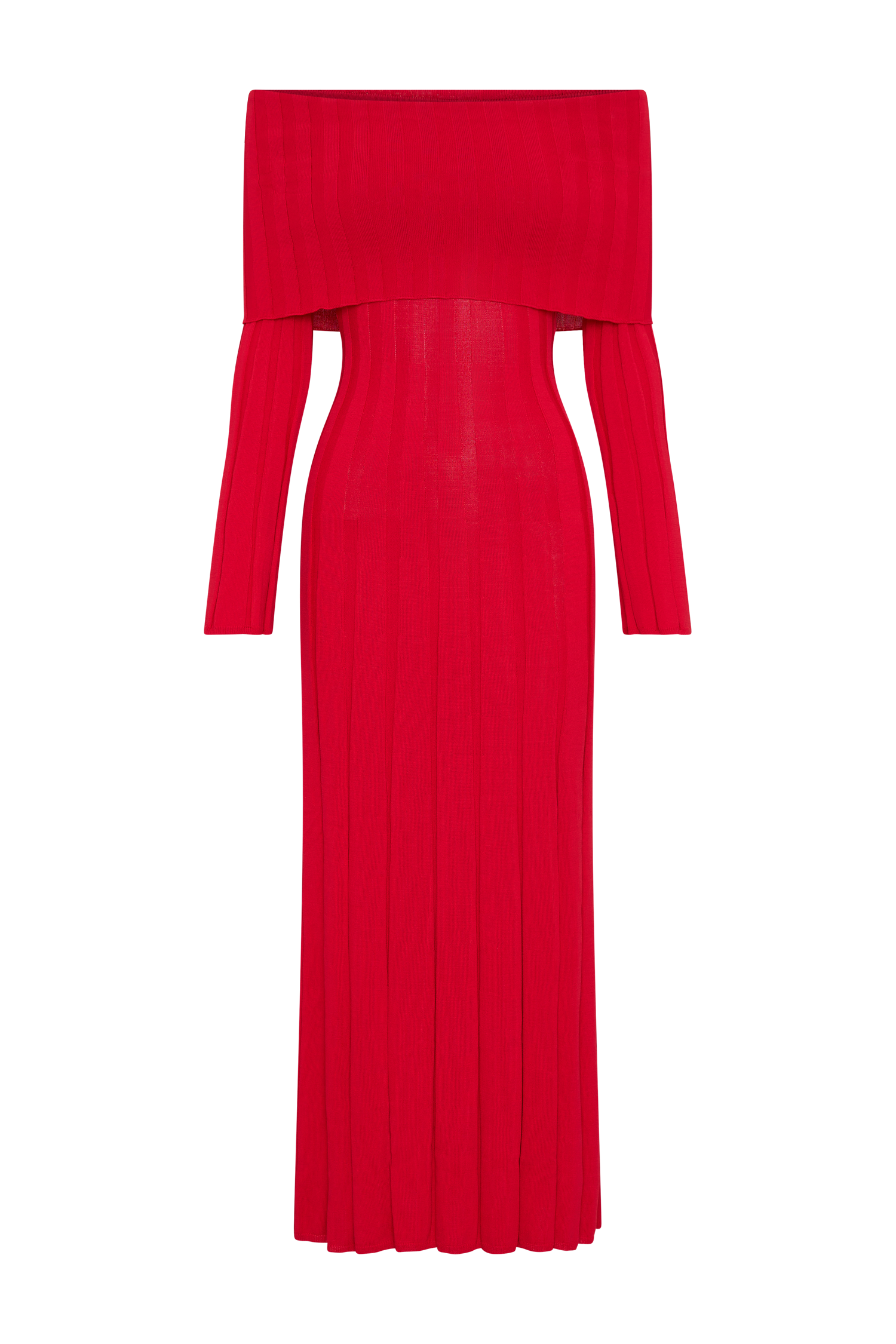 Alonza Long Sleeve Knit Midi Dress - Red
