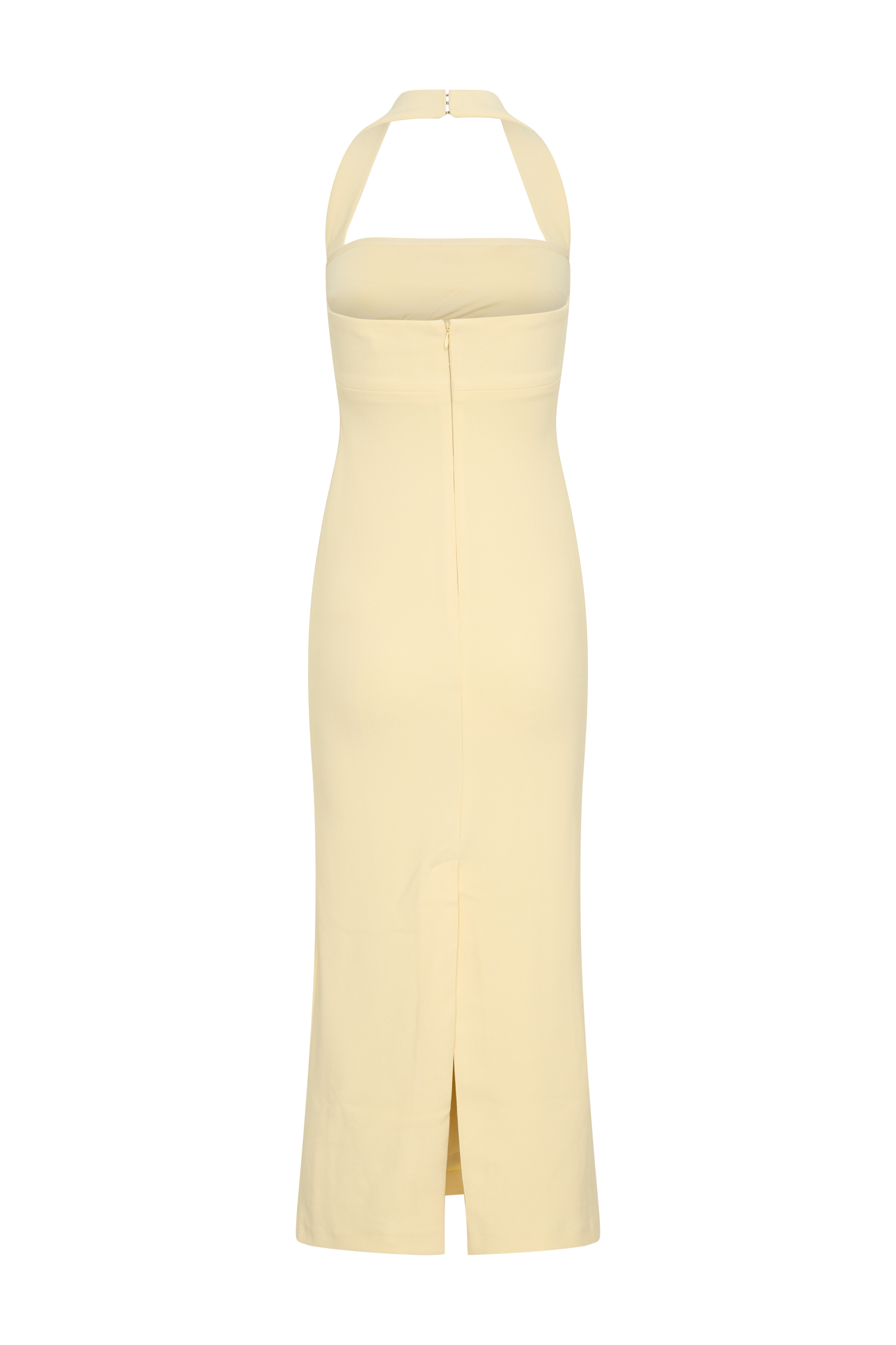 Amelita Suiting Halter Midi Dress - Pale Lemon
