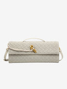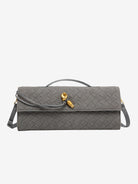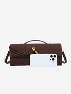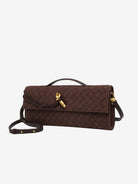 The Seraphine Woven Suede Clutch exudes elegance with its soft suede finish and intricate woven design. Complete with a gold-tone knot-tie closure, this compact clutch is perfect for storing your essentials while adding a sophisticated touch to your look.