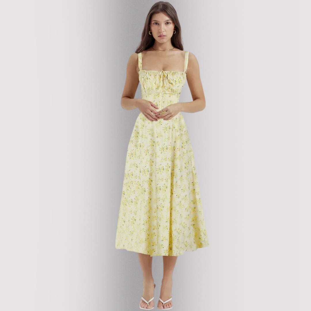 Radiant and Stylish: The Amelie Lace-Up Floral Midi Dress