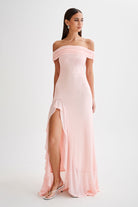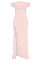 Audrey Off Shoulder Mesh Maxi Dress - Pale Pink