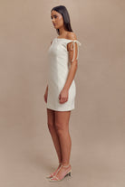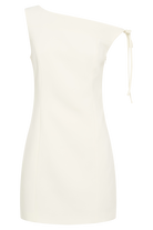The BAKER Suiting Off Shoulder Dress is a perfect blend of modern sophistication and timeless elegance. This mini dress features an asymmetrical neckline and a drop shoulder design, highlighted by a chic shoulder tie detail for added flair. The contour panel lines create a flattering silhouette, while the side zip closure ensures a seamless fit. With its mini length, the Baker dress offers a stylish and polished look, ideal for any upscale event or evening out.