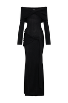 Cameron Off Shoulder Tie Maxi Dress - Black