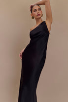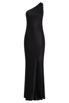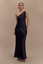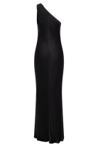 Camille One Shoulder Satin Maxi Dress - Black