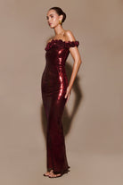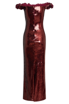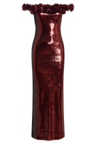 Carrie Sequin Rose Maxi Dress - Mahogany