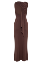 Catelyn Asymmetrical Scuba Jersey Midi Dress - Cacao Brown