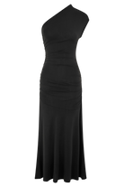 Chloe Peached Jersey One Shoulder Midi Dress - Black