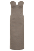 The CHRISTIE Strapless Midi Dress is the epitome of sleek sophistication, designed to captivate attention. Featuring a wire-shaped deep plunge neckline and a strapless design, this dress offers an alluring, modern look. The fitted waist accentuates your curves, while the pencil skirt shape creates a streamlined silhouette that flatters all body types. With a centre back zip and hook-and-eye closure for a seamless fit and a centre back vent for ease of movement, the Christie Midi Dress combines elegance with comfort in its midi-length cut. Perfect for any special occasion, it ensures you make a memorable entrance.
