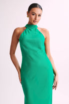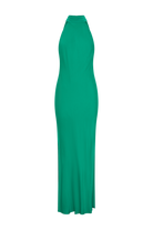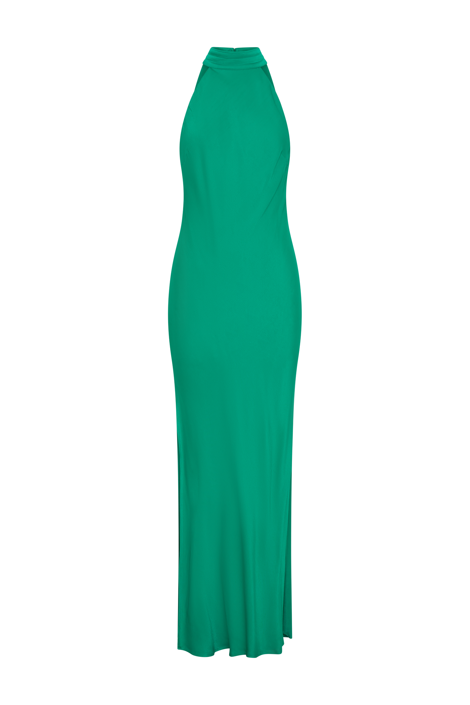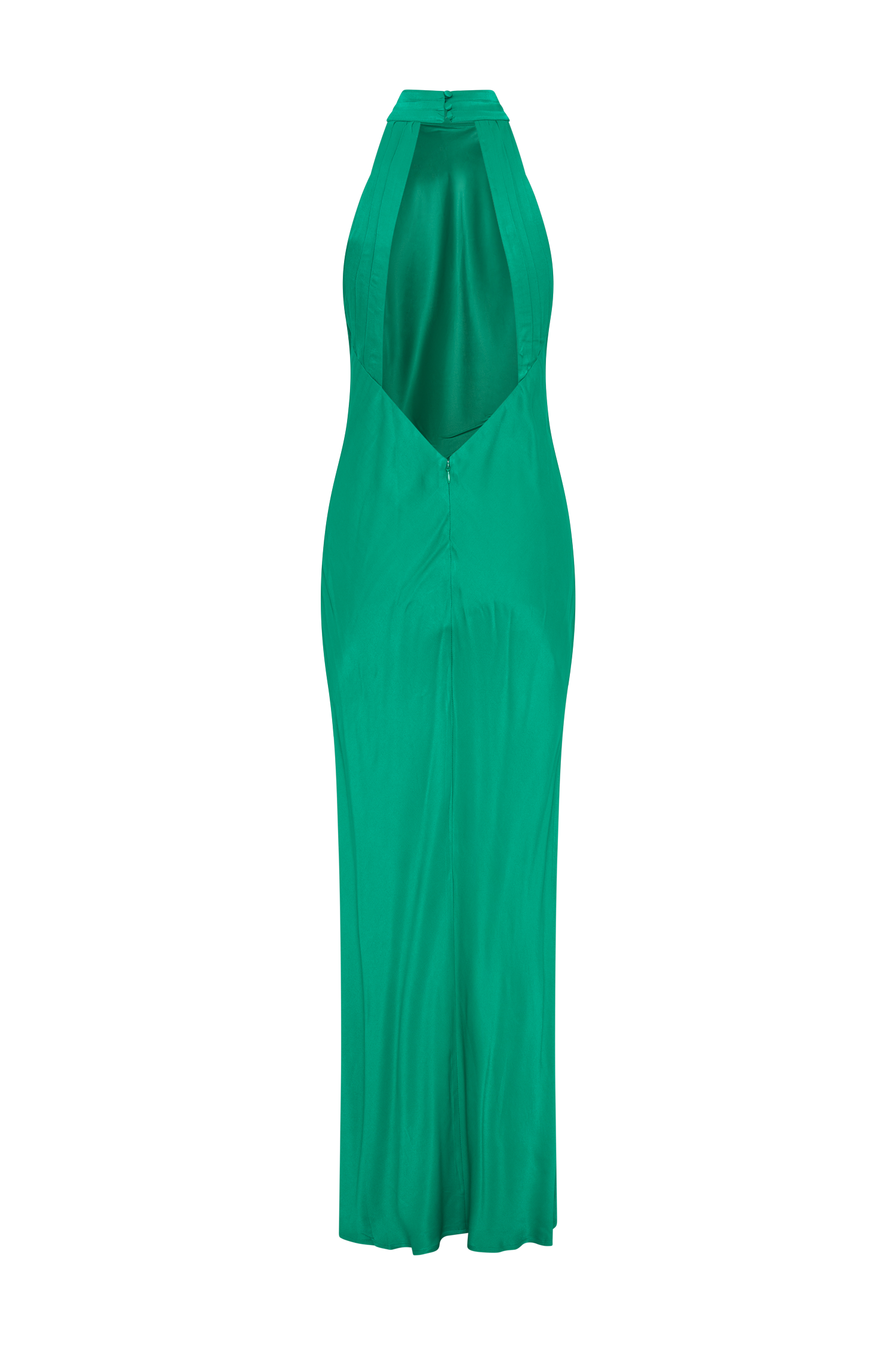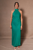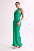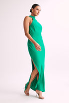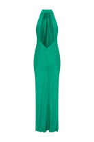 Claire Satin Drape Back Maxi Dress with Split - Green