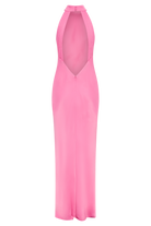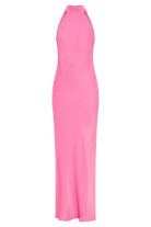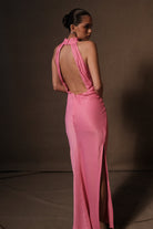 Claire Satin Drape Back Maxi Dress with Split - Pink