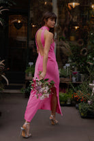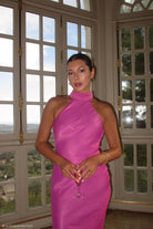 Look no further than the CLAIRE Satin Drape Back Maxi Pink Dress for a timeless and elegant impression at your next special event. Showcasing a minimalistic silhouette, Claire is transformed with her striking open-back that will have you turning heads. Accompanied by statement accessories, this maxi pink dress makes the perfect piece for weddings, work functions or celebratory dinners.