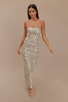 Claudette Strapless Satin Maxi Dress - Polka Dot Print