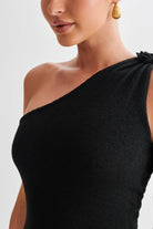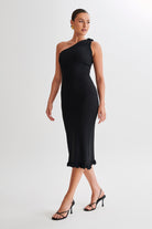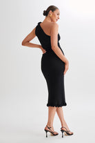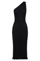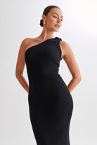 Indulge in effortless sophistication with the CLEMENTINE One Shoulder Knit Midi Dress, a blend of modern elegance and chic design. Featuring an asymmetrical, single-shoulder silhouette, this dress exudes contemporary charm. Unlined and knitted, it offers both comfort and breathability, ensuring you feel as good as you look. With a bodycon fit, it flatters your curves while allowing for ease of movement. The delicate flower applique on the shoulder adds a touch of feminine allure, making this dress perfect for any occasion.