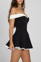 Elegant with a twist, the Vivienne Contrast Corset Dress features a structured bodice with vertical boning, a flared babydoll skirt, and bold contrast detailing at the sleeves and hem. Perfect for standout occasions where modern romance meets timeless style.