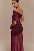 Dallas One Shoulder Mesh Maxi Dress - Burgundy