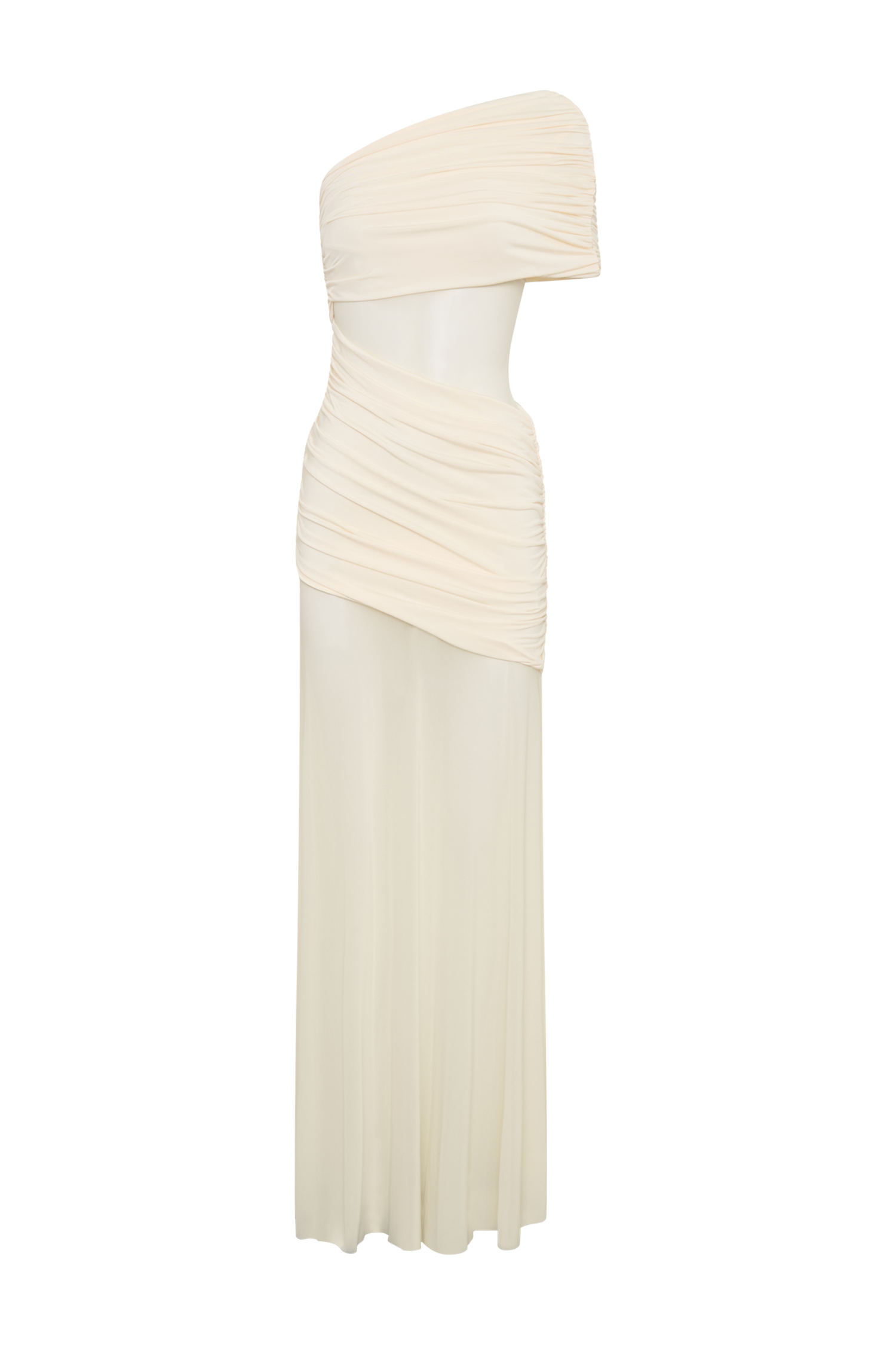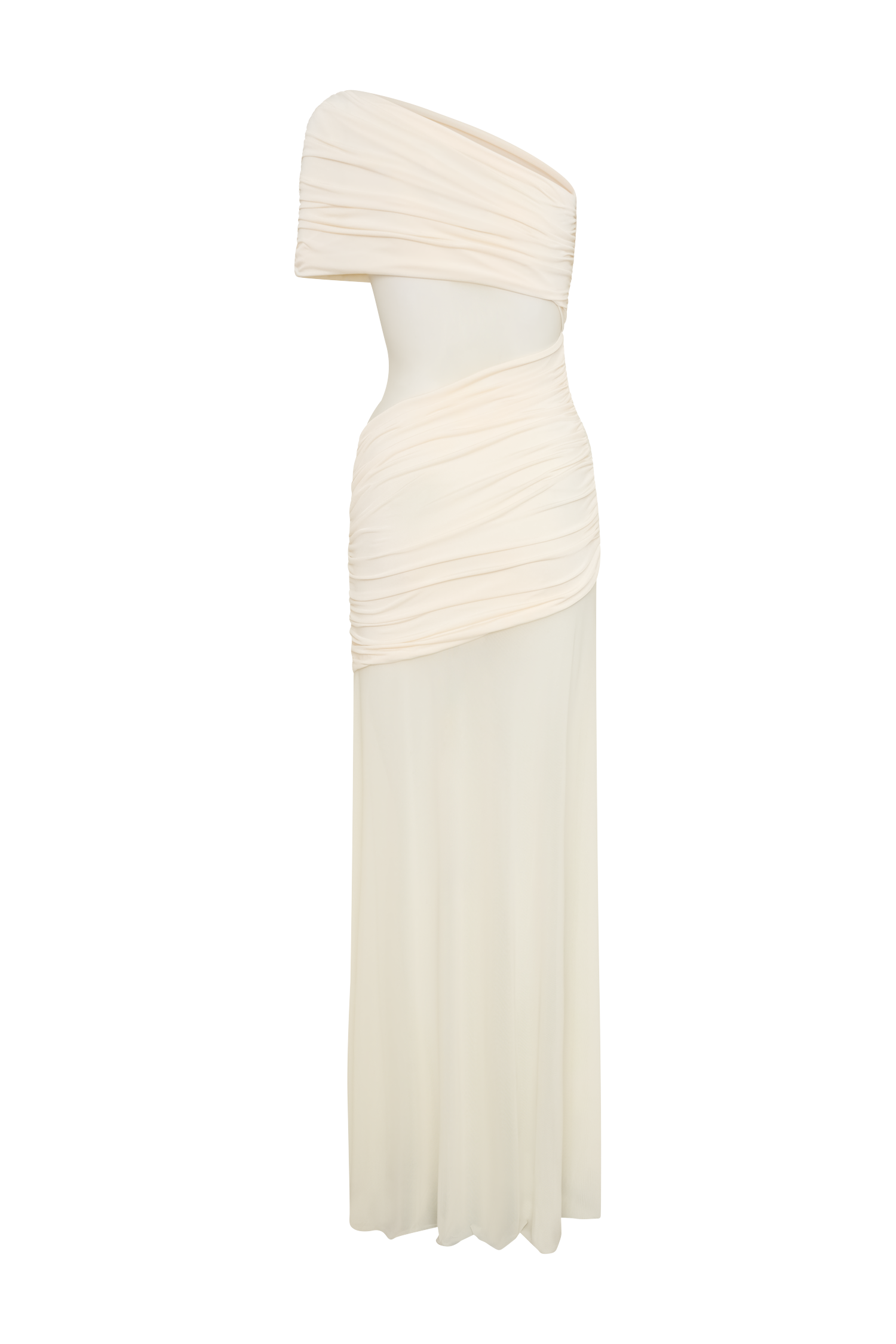 Dallas One Shoulder Mesh Maxi Dress - Ivory
