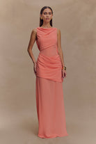 Daria Draped Chiffon Maxi Dress - Pastel Nectarine