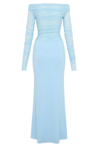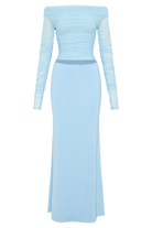 Darla Mesh And Slinky Off Shoulder Maxi Dress - Sky Blue