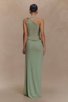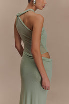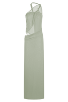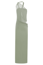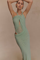 The EDWINA Knotted Mesh Maxi Dress is a striking blend of fluidity and form. Designed with a twisted neckline and knot details at both the front and back shoulder, this dress creates an effortlessly sculptural silhouette. The mesh bodysuit base offers a sleek, figure-hugging fit, while the overlay skirt drapes from the waist with a gathered front panel that adds texture and movement. Crafted from double-layered mesh for a soft, dimensional finish, this dress is made to turn heads—perfect for after-dark events or elevated occasions.