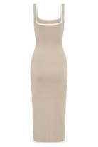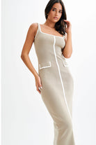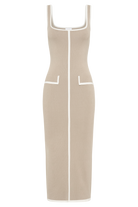 Eimear Contrast Knit Midi Dress - Taupe & Ivory