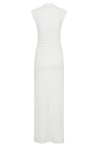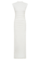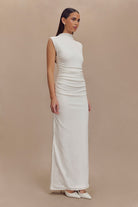 The ELLIOT High Neck Sleeveless Maxi Dress exudes effortless elegance with its refined design and sophisticated details. Featuring a high neckline and sleeveless cut, this maxi dress highlights a sleek, elongated silhouette. The ruched side details add a touch of texture and visual interest, creating a flattering fit that enhances the body's natural curves. Lined for a smooth, comfortable wear, and crafted from soft jersey fabrication, the Elliot Dress combines style with ease. With its graceful maxi length, it’s perfect for making a chic statement at any formal or special occasion.