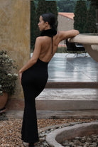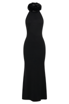 Elva Halter Knit Maxi Dress With Faux Fur - Black