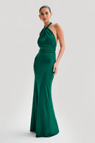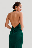Elyna Slinky Halter Maxi Dress - Forest Green