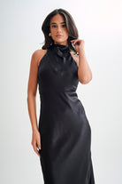 Esther Iridescent Satin Cowl Maxi Dress - Black