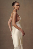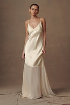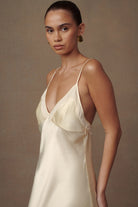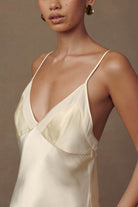 Evelyn Iridescent Satin Maxi Dress - Lemon Sorbet