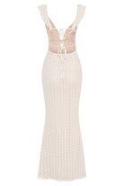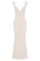 Indulge in the chic allure of the EZRA Knit Maxi Dress, a captivating piece that effortlessly blends comfort and style. The V neckline and flutter sleeves add a touch of femininity, creating a flattering silhouette. Self-ties at the back allow for a personalised fit, while the centre front keyhole adds a hint of intrigue. The dress boasts a patterned knit that exudes modern charm, and being unlined knitwear, it provides a breathable and relaxed feel.