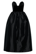 Step into elegance with the FLORA Strapless Velvet Midi Dress—a sophisticated choice for special evenings. This dress features a strapless, deep neckline and a structured velvet bodice that enhances your silhouette. The gathered full skirt flows gracefully, creating a romantic, feminine shape that’s both timeless and chic. Finished with a discreet centre back zip for ease, this dress combines luxurious texture with refined design, making it perfect for any occasion that calls for a touch of glamour.