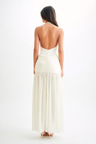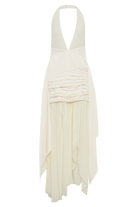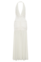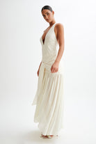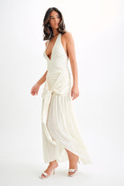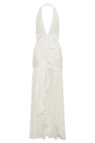 Graziana Satin Chiffon Plunge Maxi Dress - Ivory