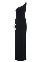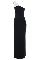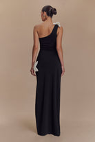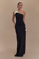Hallie One Shoulder Bow Maxi Dress - Black/White