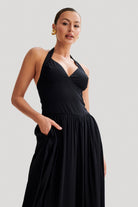 Harriette Halter Midi Dress - Black