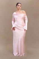 Iris Long Sleeve Satin Maxi Dress - Soft Pink