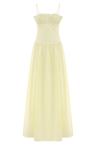 The JANIS Cotton Frill Maxi Dress is the embodiment of feminine charm with a carefree spirit. Featuring a delicate frill-gathered neckline and slender spaghetti straps, this dress is designed with a fitted bodice and curved waist seam to accentuate the silhouette. The drop waist flows into a full, gathered skirt for effortless movement, while the maxi length adds graceful drama. Fully lined and finished with a centre back invisible zip, this dress is your go-to for sun-drenched days and warm evening escapes.
