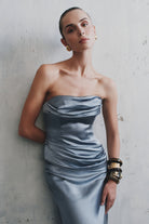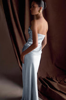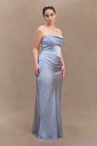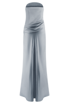 Jasmine Strapless Satin Maxi Dress - Frosted Blue