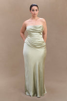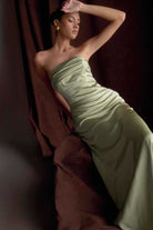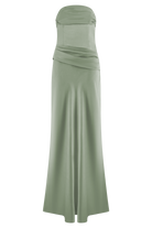 Jasmine Strapless Satin Maxi Dress - Sage