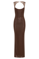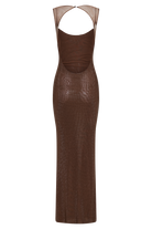 Jasmyn Hot Fix Maxi Dress With Mesh Back - Chocolate