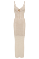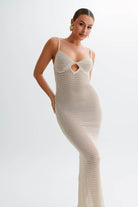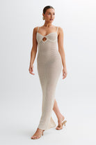 Jeannie Stripe Cupped Knit Maxi Dress - Tan/White