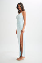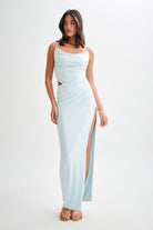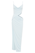 Jemma Draped Slinky Maxi Dress - Sky Blue