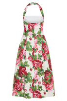 Step into timeless sophistication with the JUANA Halter Midi Dress, a graceful design that exudes femininity. Featuring a flattering halter neckline and a rounded waistline, this dress beautifully highlights your silhouette. The front and back skirt pleats add movement and texture, enhancing its refined charm. Designed in a chic midi length with a discreet side zip for easy wear, this dress is perfect for weddings, soirées, or any occasion where effortless elegance is key.