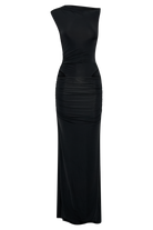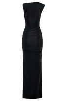 The KAIA Slinky Cut Out Maxi Dress combines sleek design with statement details. Featuring an asymmetrical neckline with elegant ruching, this bodycon dress sculpts the silhouette while the cutout details at the hips add a daring touch. The ruching at the waist enhances the shape, and the maxi length exudes timeless allure. Fully lined for comfort and a flawless fit, the Kaia Dress is the ultimate blend of modern glamour and refined elegance.